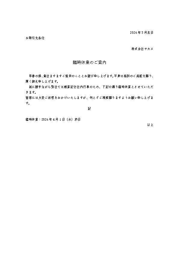 臨時休業のご案内